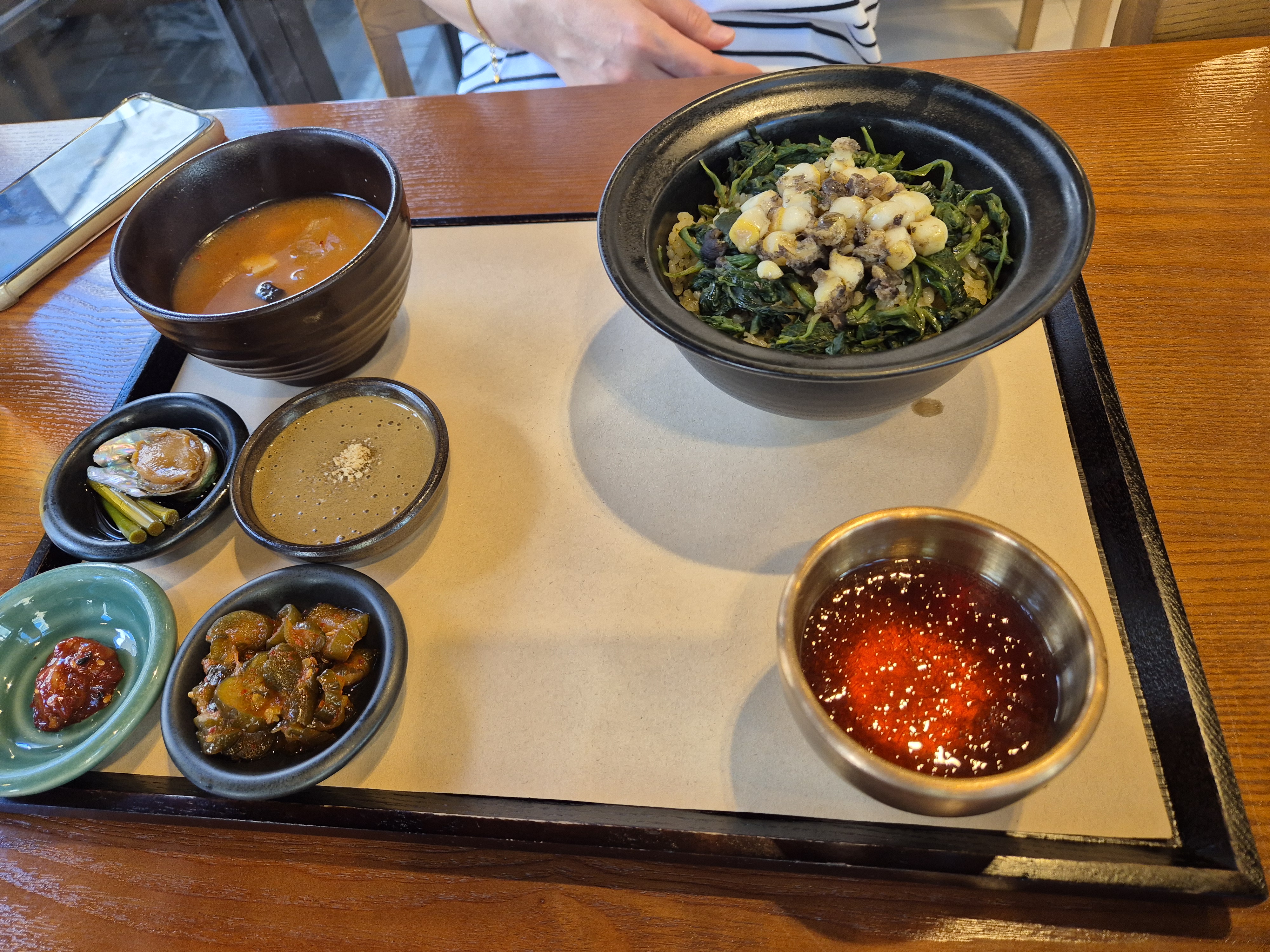 - 메인 메뉴 외에도 다양한 밑반찬과 함께 따뜻한 된장국이 정갈하게 트레이에 담겨 나옵니다. 맛과 건강을 모두 챙길 수 있는 완벽한 한 끼입니다.
